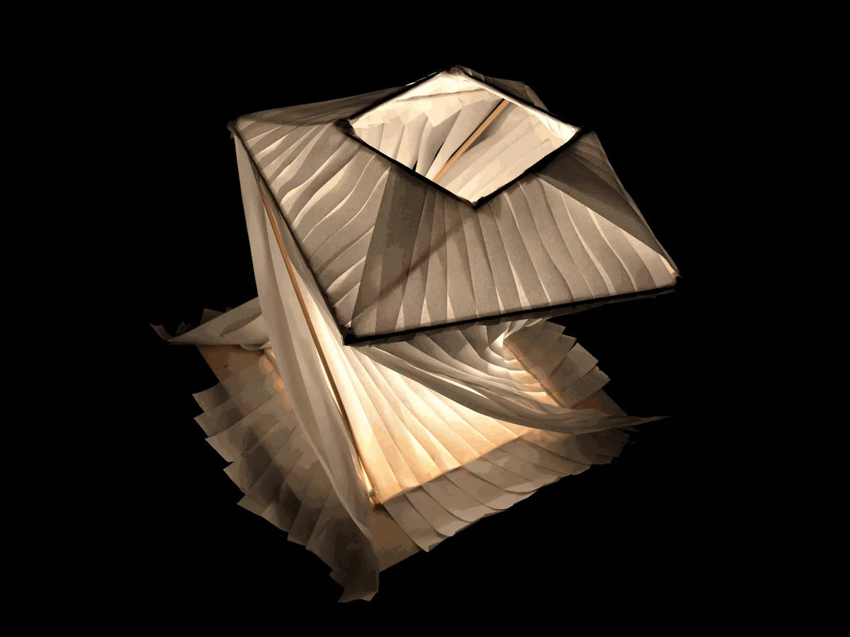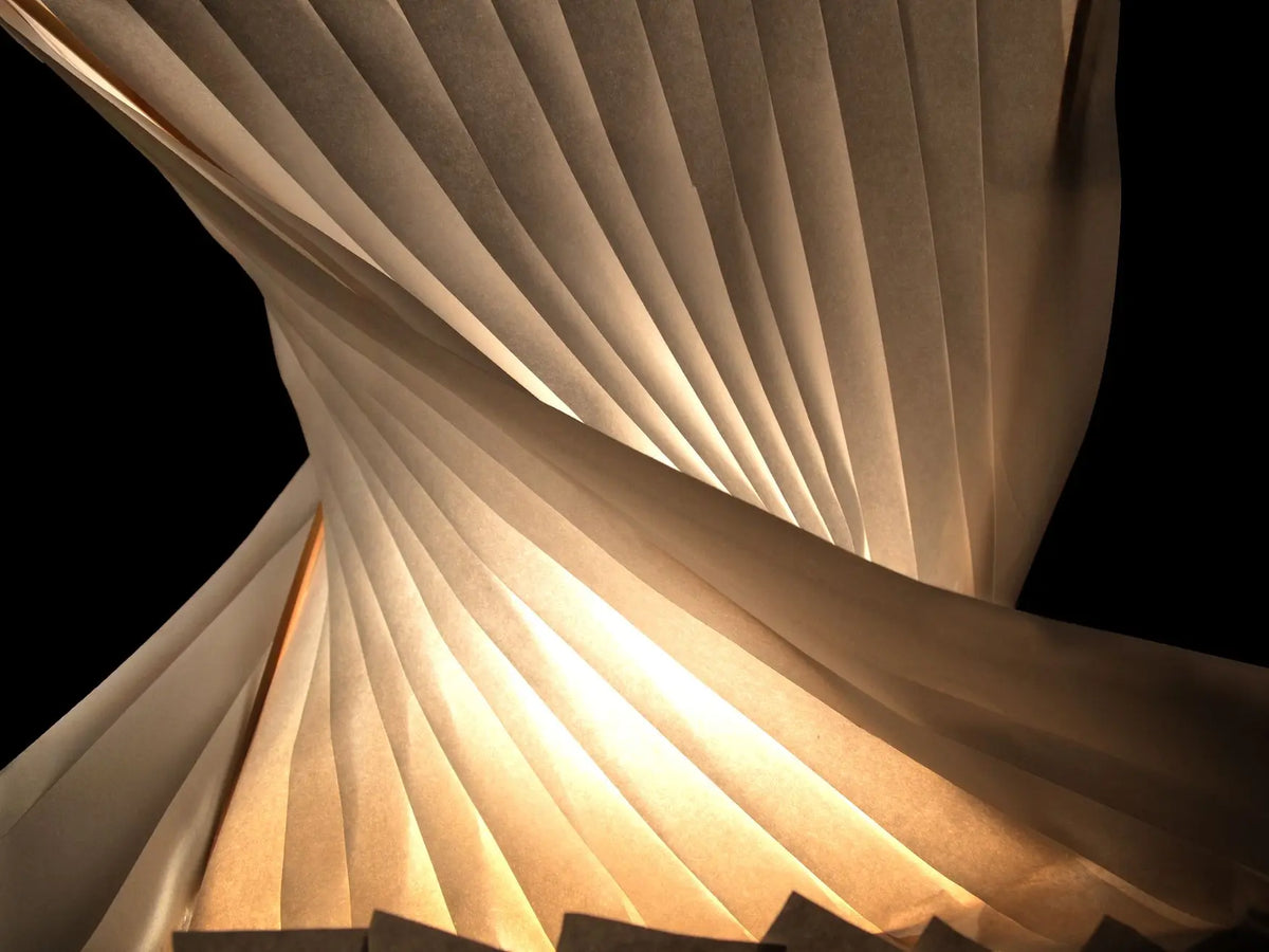 Created for the “Mino Washi” festival taking place in the city of Mino, Japan, this lamp was inspired by the shape of 19th-century French street lamps. The paper used for the lamp is a traditional Japanese rice paper, crafted in strips to accentuate the twists.